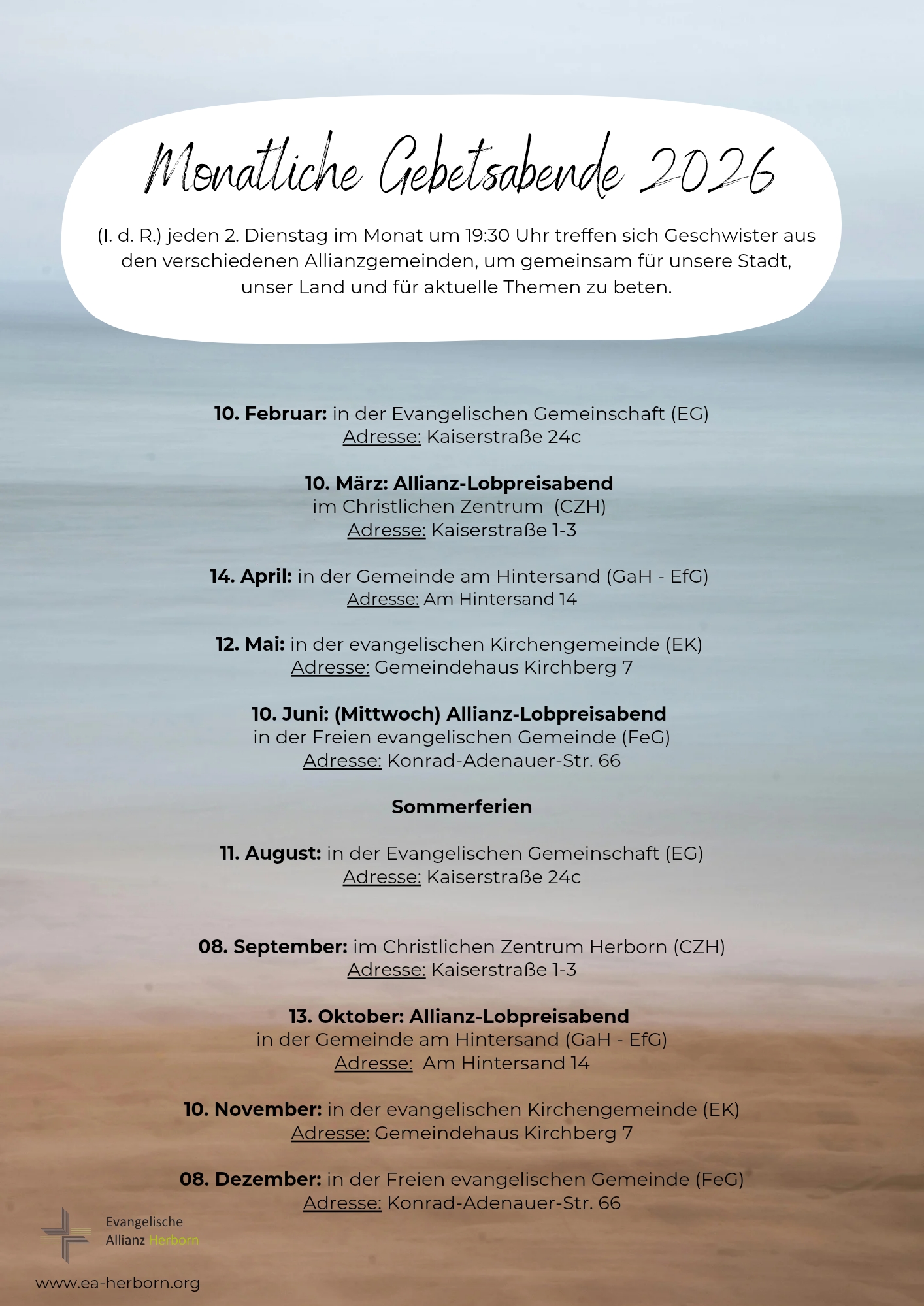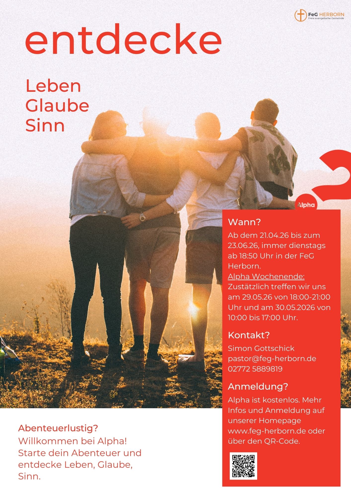 Sonntag, 10:00 Uhr im Gemeindehaus der FeG Herborn. Solltest du nicht vor Ort sein können, besteht die Möglichkeit, den Gottesdienst via Livestream mitzuerleben.